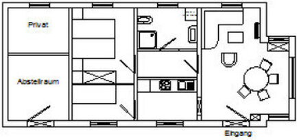 Wohn-Esszimmer: Tisch und 4 Stühle,